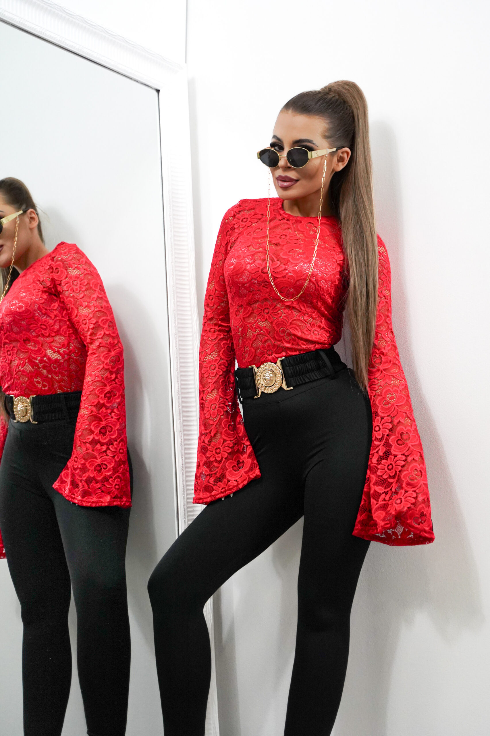 Idealnie pasuje do spódniczki, którą również znajdziesz w naszej ofercie, oraz do dzwonów czy naszych leginsów.